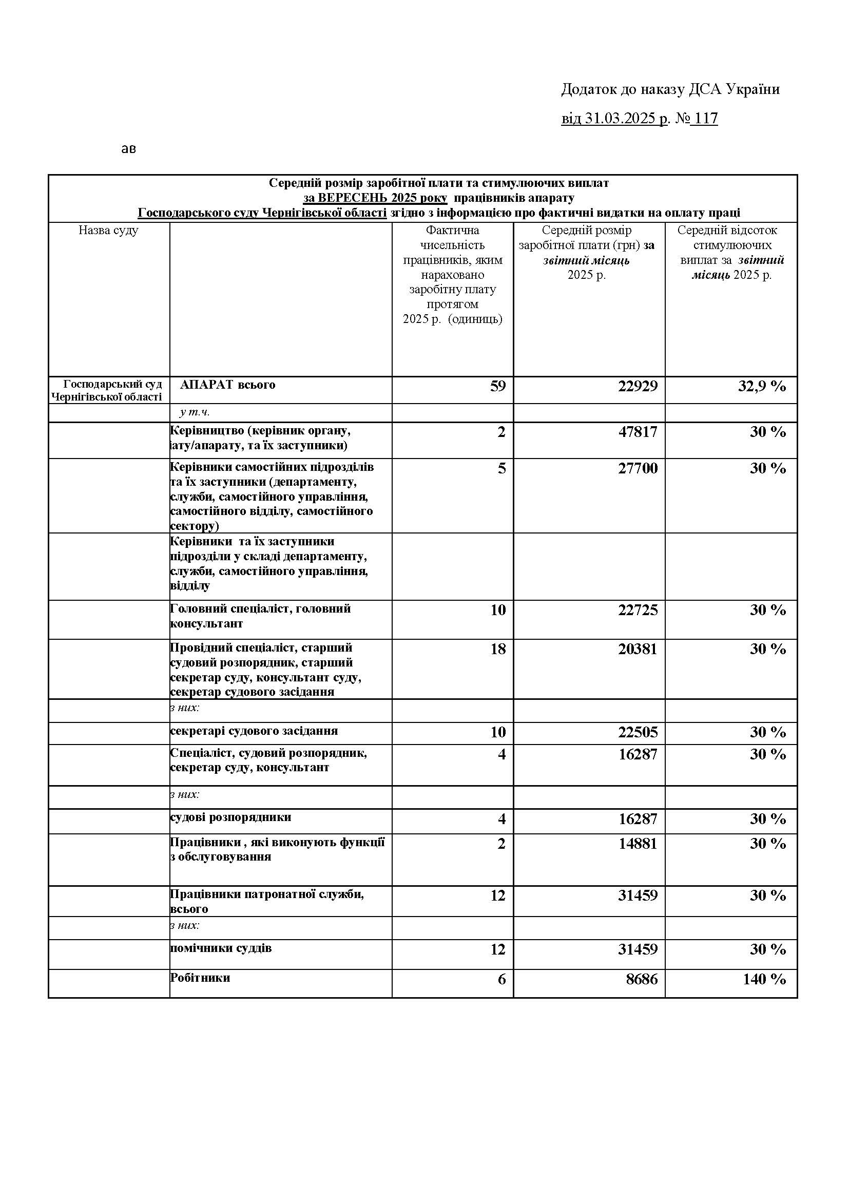 Інформація про середній розмір заробітної плати та стимулюючих виплат працівників апарату суду за вересень 2025 року