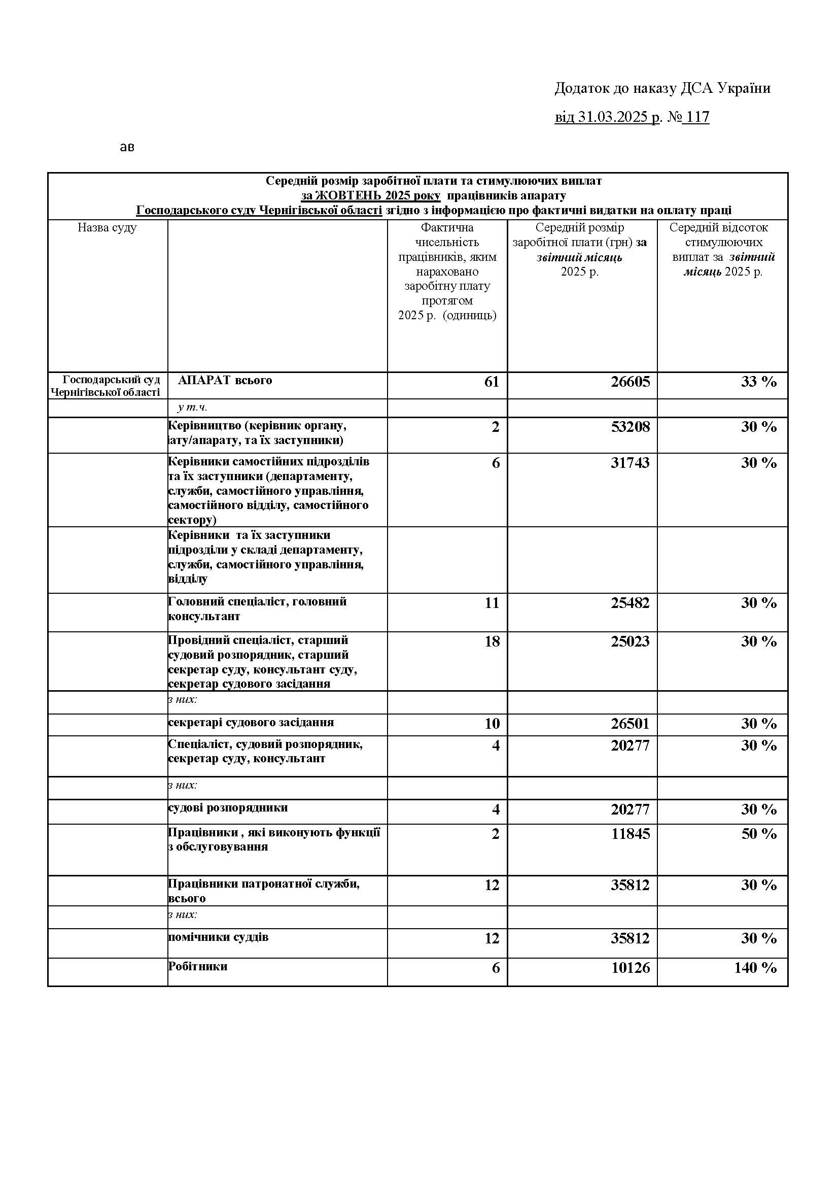 Інформація про середній розмір заробітної плати та стимулюючих виплат працівників апарату суду за жовтень 2025 року